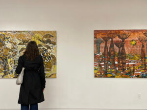 His paintings blend abstraction, figuration, and surrealism, creating richly layered compositions.